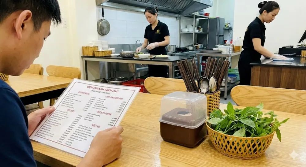 Atmosphere: Escape the chaos. We offer a space decorated with traditional handcrafted bamboo, warm lighting, and crucial for Hanoi summers, cool Air Conditioning. It is a place where you can savor the meal without shouting over traffic noise.