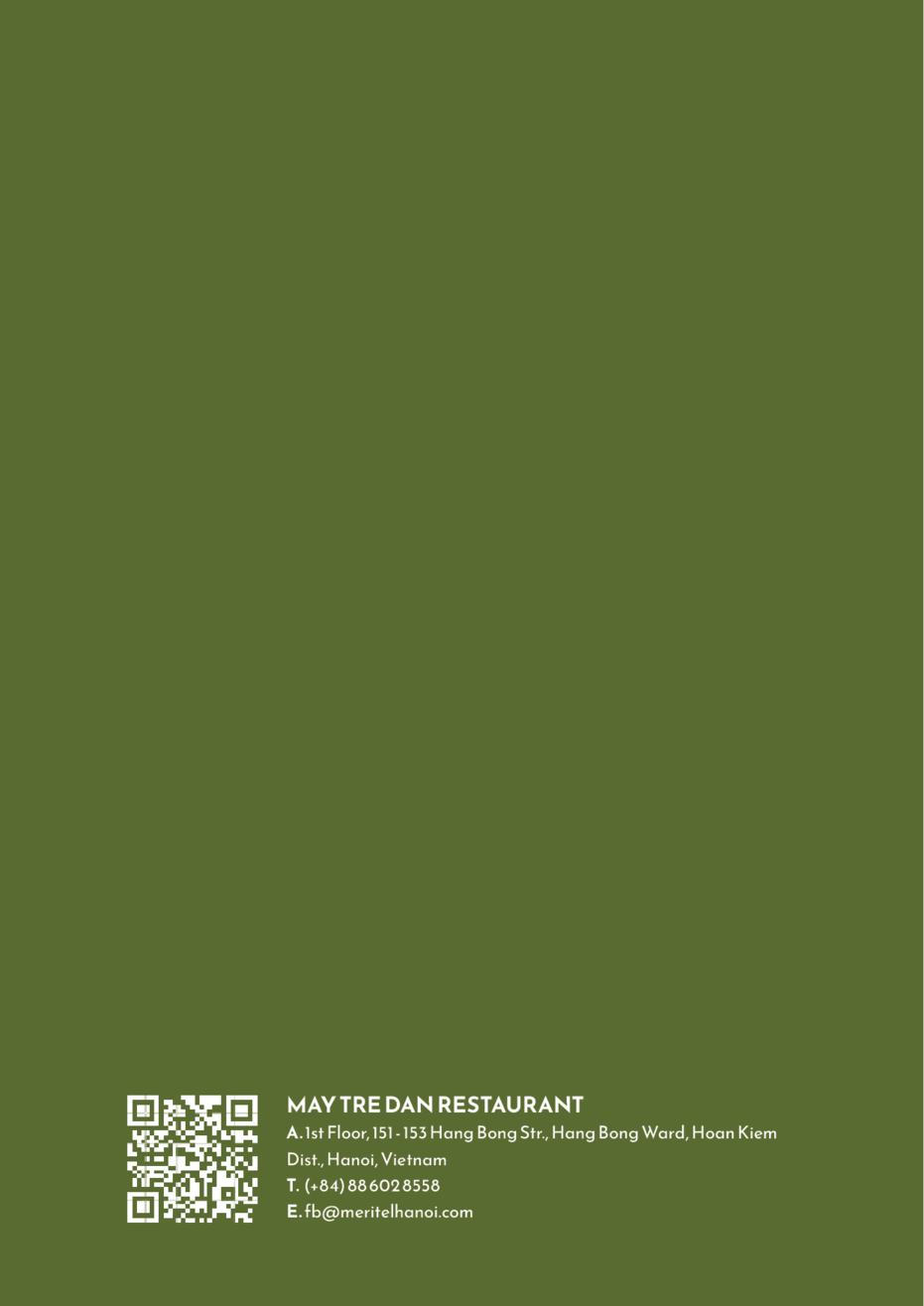 Named and inspired by a traditional culture with a history of development spanning nearly 400 years, at May Tre Dan restaurant, we are not just a place to savor cuisine, but a journey deep into the heritage of each region in Vietnam. Here, every detail, every dish tells intriguing stories and ignites curiosity about the diverse culture of the S-shaped country. Ultimately, it is a hopeful aspiration for the beautiful cultural essence of Vietnam to leave a lasting impression on international travelers