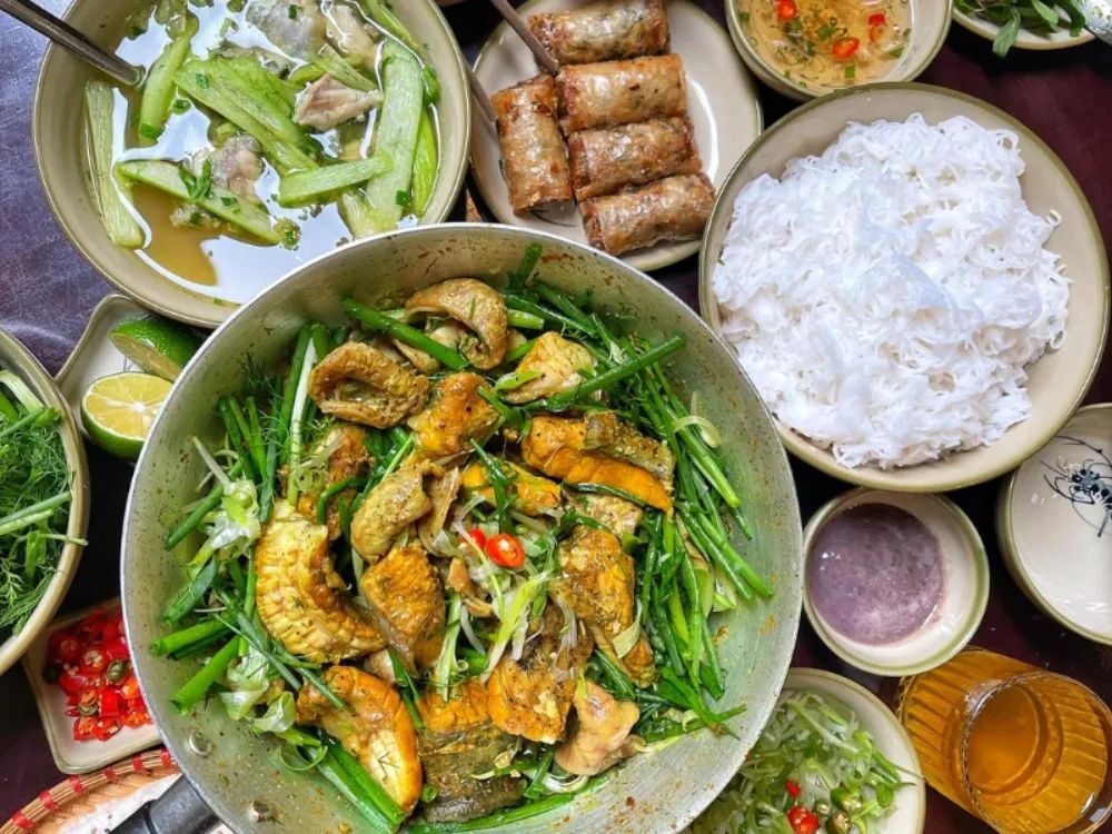 Cha Ca (Turmeric Fried Fish with Dill) is one of the dishes you absolutely "must try" when visiting Hanoi. The dish features fish marinated in turmeric, fried in a hot pan with dill and green onions, and served with vermicelli noodles, fresh herbs, and roasted peanuts. The most exciting part is that many places serve it "sizzling at the table," which is both delicious and fun-perfect for travelers experiencing Vietnamese cuisine for the first time. The list below highlights the Top 10 Best Cha Ca Hanoi restaurants for you.