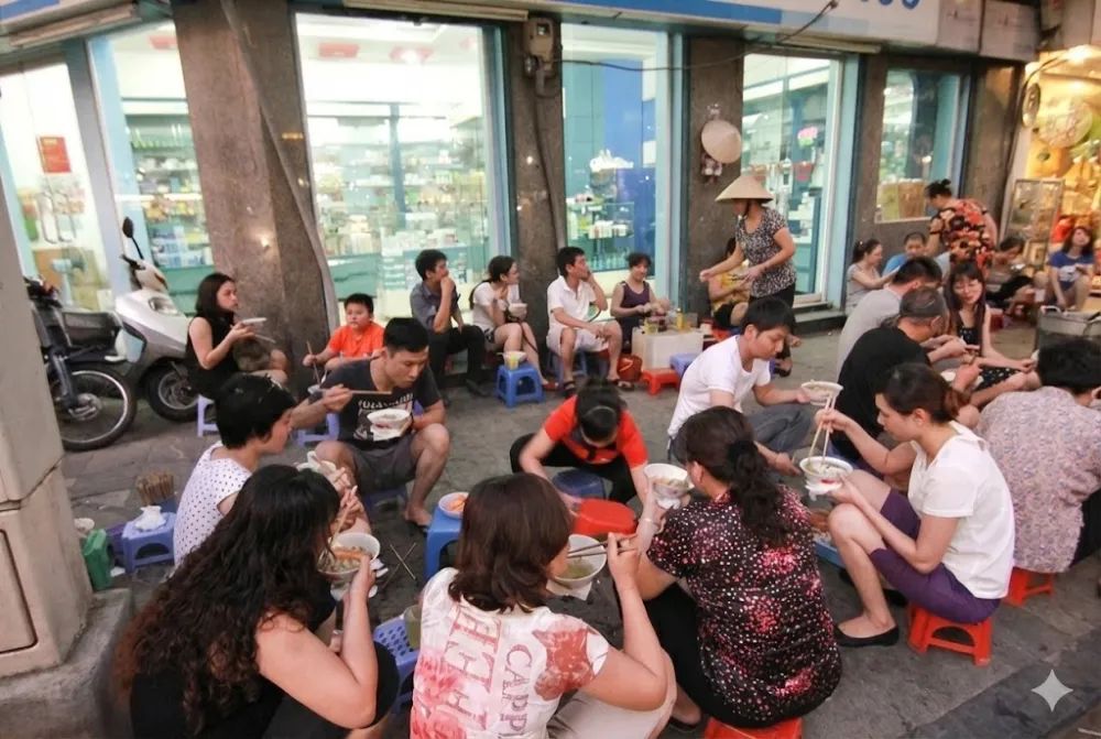 The Experience: Sitting on a narrow sidewalk, holding a hot bowl of Pho (or placing it on a high plastic stool). It feels very close and rustic.