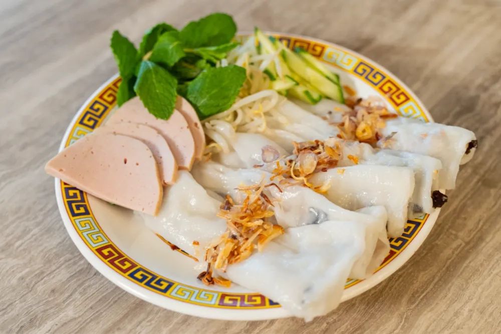 Watch the chef spread a ladle of rice flour batter onto a steam cloth it’s thin as silk. These delicate rolls are filled with minced pork and wood ear mushrooms, then topped with fried shallots and dipped in mild fish sauce. It is the definition of a delicate, light meal that melts in your mouth.